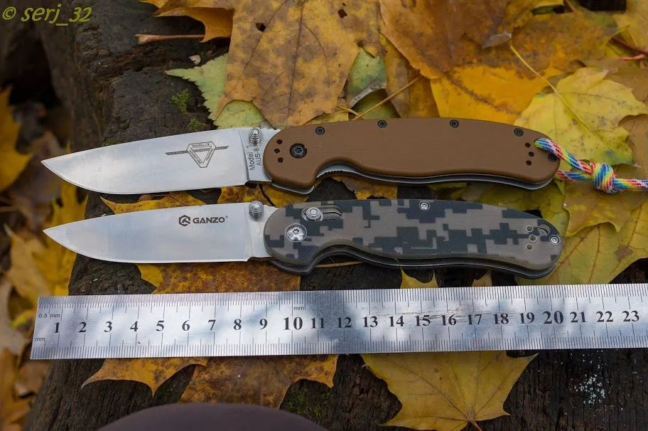 Модель ножа Ganzo G727 является репликой на Ontario Rat. Но это не полная реплика. Нож имеет немного уменьшенные габариты и замок другого типа.