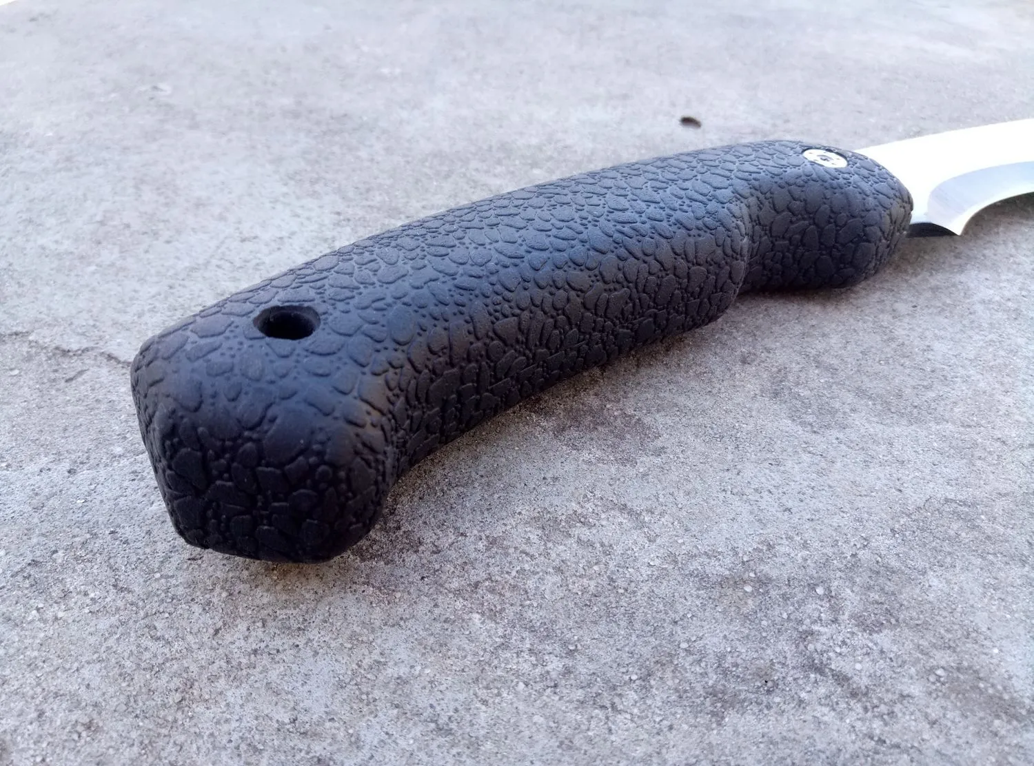 Рукоятка у модели Firebird F804-FS массивная и с монолитной конструкцией. Она целиком выполнена из прорезиненного пластика и не разбирается, что позитивно сказывается как на прочности мачете в целом, так и удобстве эксплуатации. К тому же, прорезиненный пластик, хоть и немного, но амортизирует удары, уменьшая нагрузку на руку пользователя.