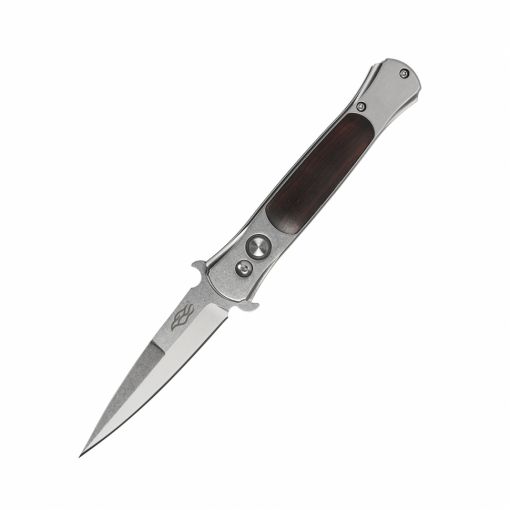 Выкидной нож Ganzo G707 совмещает в себе функциональность туристического складного ножа и эстетику средневекового стилета. Он предлагает пользователю узкий клинок длиной 8.5 сантиметров, стальную рукоять с деревянными накладками, уменьшающими скольжение модели в ладони, и удобный механизм открытия и блокировки клинка Button Lock.