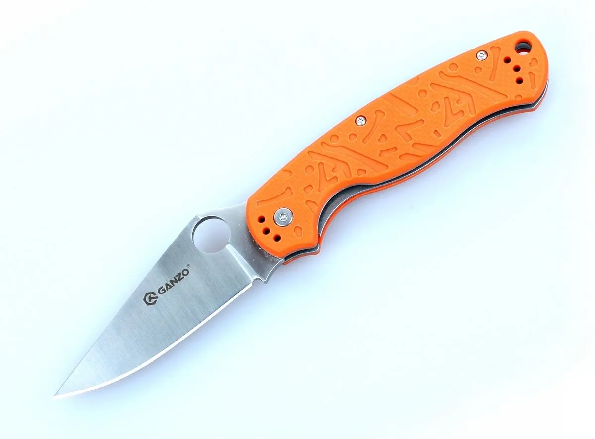 Что касается дизайна рукоятки, то он остался вполне в стиле Ganzo. Сделана рукоятка из стеклопластика G10, популярного сейчас благодаря прочности, пластичности и долговечности. На нее нанесен рисунок, названный «короед». Конечно же, покупатели могут выбрать понравившийся цвет из нескольких вариантов: оранжевый, черный, зеленый.
