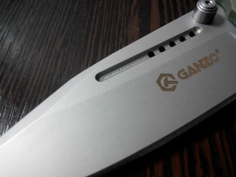 440C. Данная марка стали является одной из самых популярных среди многих производителей ножей и используется компанией Ganzo для создания разнообразных EDC и туристических моделей. Она сочетает в себе хорошую прочность икоррозиестойкость, а за счёт специальной закалки, уровень её твёрдости может достигать 60HRC, что крайне позитивно сказывается на долговечности клинка и позволяет режущей кромке долго сохранять остроту.