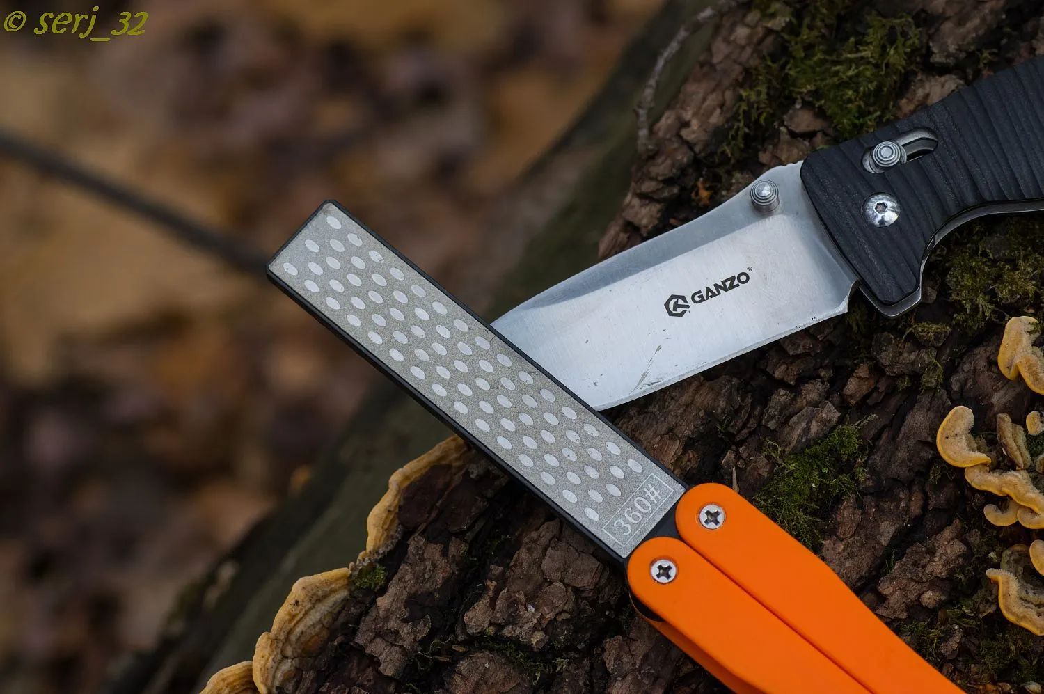 Есть великое множество точилок для ножей. Сейчас же поговорим о 2-х стороннем алмазном бруске с двумя поверхностями различной зернистости – GANZO G506.