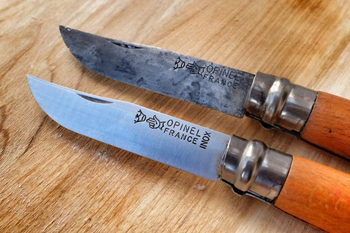 Многие производители указывают на клинке марку используемой стали или её тип. В случае ножей бренда Opinel, клеймо «Inox» означает применение нержавеющей стали.