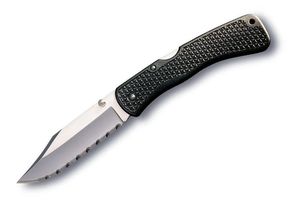 - Комбинированная — как понятно из названия, клинок в таком случае одновременно имеет гладкую и серрейторную заточку. Чаще всего, от кончика лезвия и примерно к середине присутствует гладкая заточка, а вот уже от середины и к основания лезвия — серрейторная. Подобная заточка позволяет выполнять одним и тем же ножом самые разнообразные действия. Однако, в большинстве случае, ножи с ~4,5 см гладкой заточкой + ~4,5 см с серрейторной, менее удобные нежели модели с полностью гладкой или серрейторной заточкой.