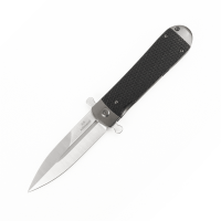 Нож Adimanti by Ganzo Samson – это компактный флиппер, чей клинок надежно запирается в открытом и закрытом положениях. Рукоять инструмента имеет стальную основу с двумя текстурированными накладками из G10 – прочного стеклотекстолита, который высоко ценится за свою стойкость к ударам и механическим повреждениям. В отличие от дешевого пластика, на стеклотекстолите не образовываются микротрещины после продолжительного воздействия низких температур. Материал также не деформируется в случае долгого нахождения под прямыми лучами солнца, не выцветает и не скользит в ладони.