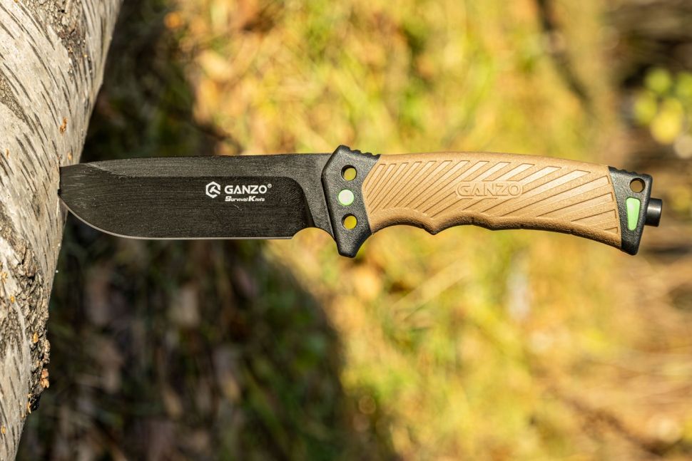 Нож Ganzo G8012V2-DY — нескладной клинок для выживания, который выдерживает повышенные нагрузки. Он предназначен для использования в полевых условиях, так как обладает повышенной прочностью клинка и надежностью конструкции, а также выделяется оригинальным дизайном с черным матовым лезвием.