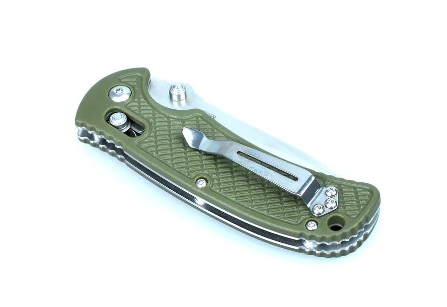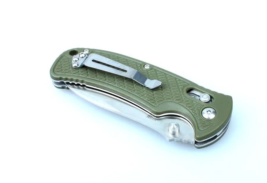 Основу рукоятки специалисты компании Ganzo изготовили из той же стали, что и клинок ножа. Но с обеих сторон на нее наложены элементы из армированного стекловолокном нейлона. Это очень прочный и долговечный материал, стойкий к большинству видов коррозии. Он не сильно греется на солнце и не переохлаждается на морозе. Поэтому держать нож в руке будет комфортно в любое время года. А чтобы нож не выскальзывал из влажных ладоней, накладки на рукоятке рифленые. Покупателям доступны три варианта цвета ножа Ganzo 726M: черный, темно-зеленый и яркий оранжевый. Кстати, на рукоятке имеется клипса-прищепка, чтобы нож можно было пристегнуть к карману.