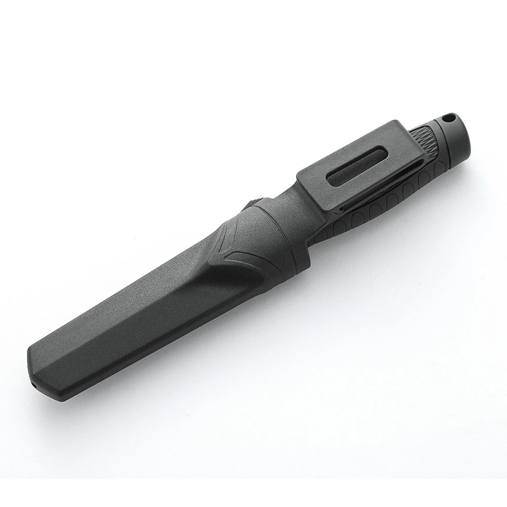 Рукоять туристического ножа G806BW-BK изготовлена из сочетания полипропилена (ПП) и термопластичной резины (ТПР). Этот материал легкий, стойкий к механическим повреждениям и химическим воздействиям, а текстурированная поверхность и форма рукоятки гарантируют надежный и комфортный хват даже во влажной среде. Нож фиксированный, что делает его особенно надежным при силовых нагрузках.