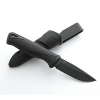 Нож оснащен прочными ножнами из полипропилена для безопасной переноски и защиты клинка. Форма ножен позволяет закрепить их на ремне и держать под рукой.