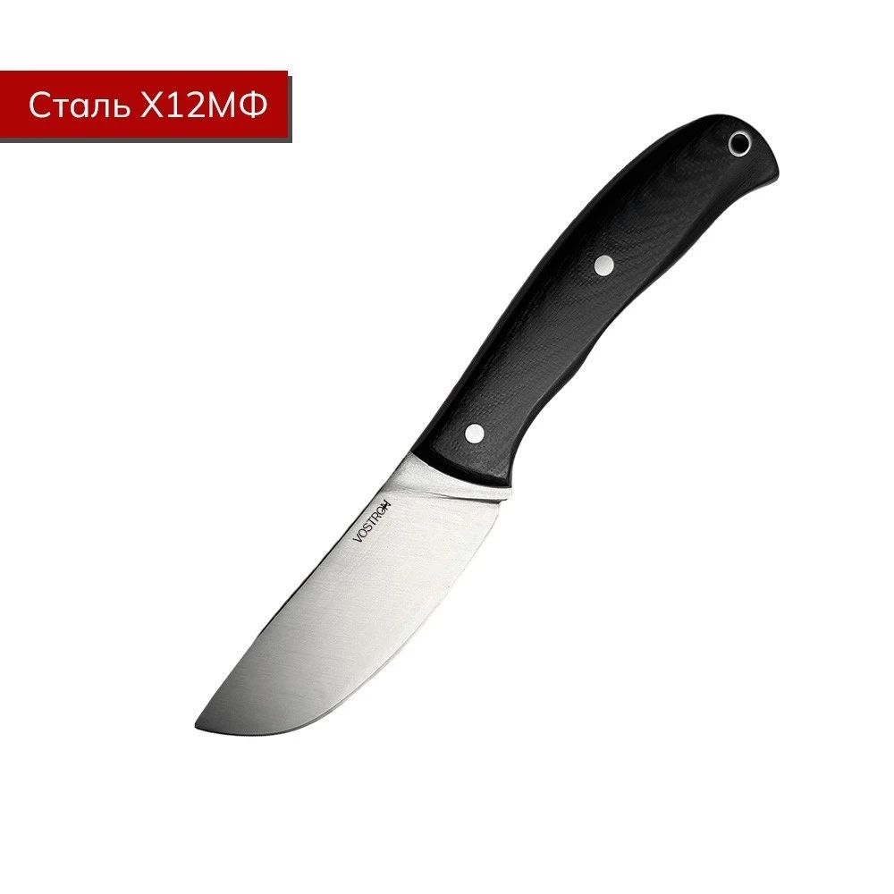 Vostron Sever — фиксированный нож, идеально подходящий для туризма. Клинок ножа выполнен из прочной инструментальной стали Х12МФ, рукоять — из стеклотекстолита G10. Общая длина ножа — 210 мм, вес — 150 г. В комплекте предусмотрены удобные ножны, которые позволяет безопасно хранить и носить нож.