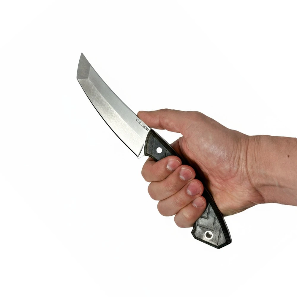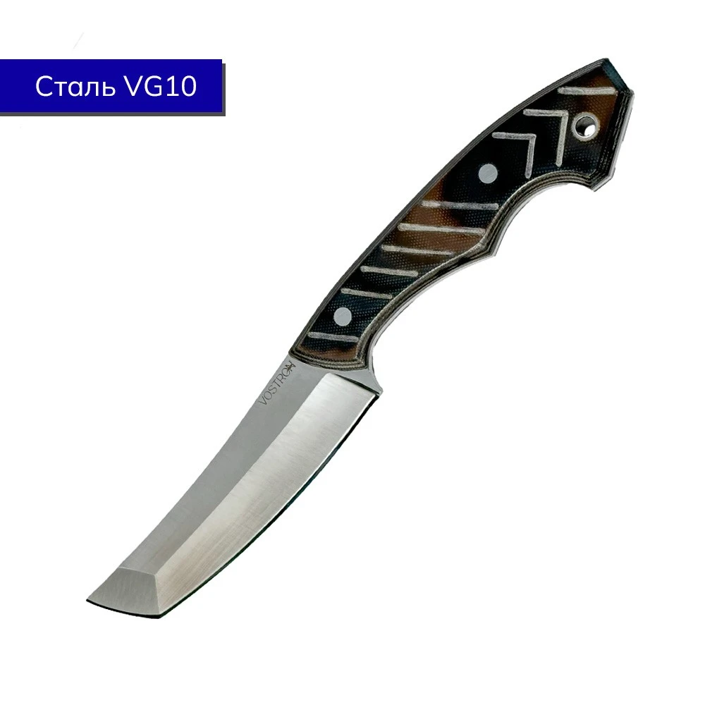 Нож Vostron Tankut VSTV10-K — это универсальный нож с фиксированным лезвием, разработанный для тех, кто ценит надёжность, эргономику и прочность в любых условиях. Клинок изготовлен из нержавеющей стали VG-10, которая известна своей износостойкостью. Такая комбинация делает нож надёжным помощником в полевых условиях.
